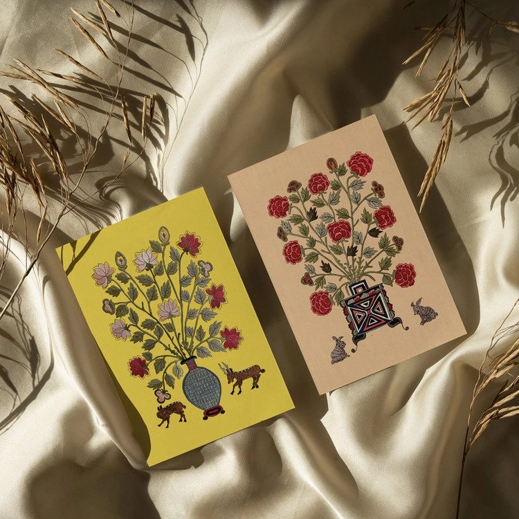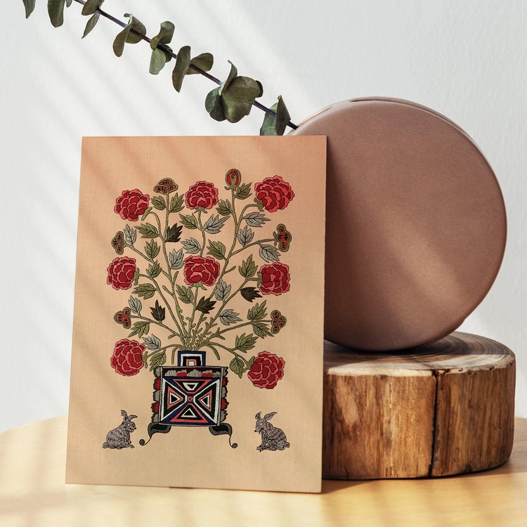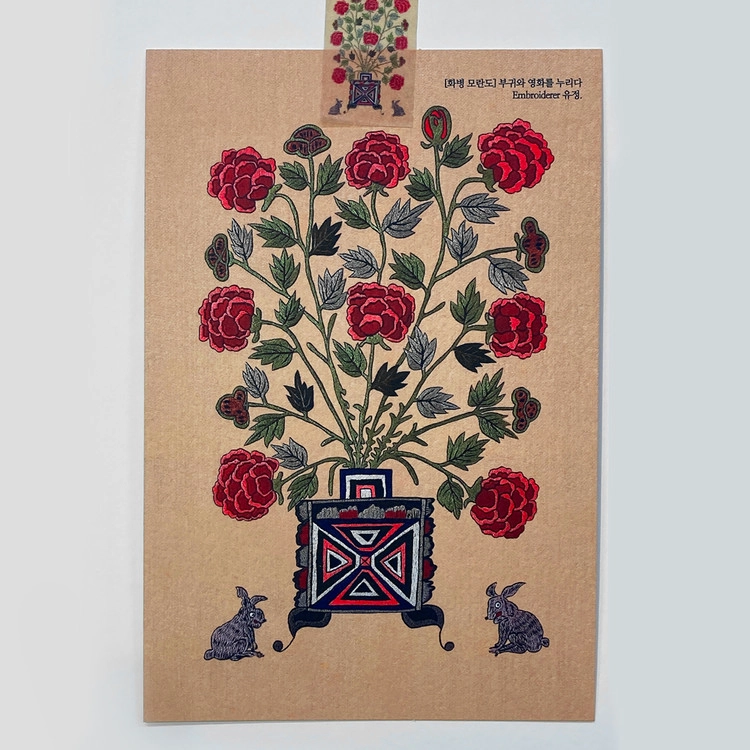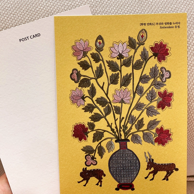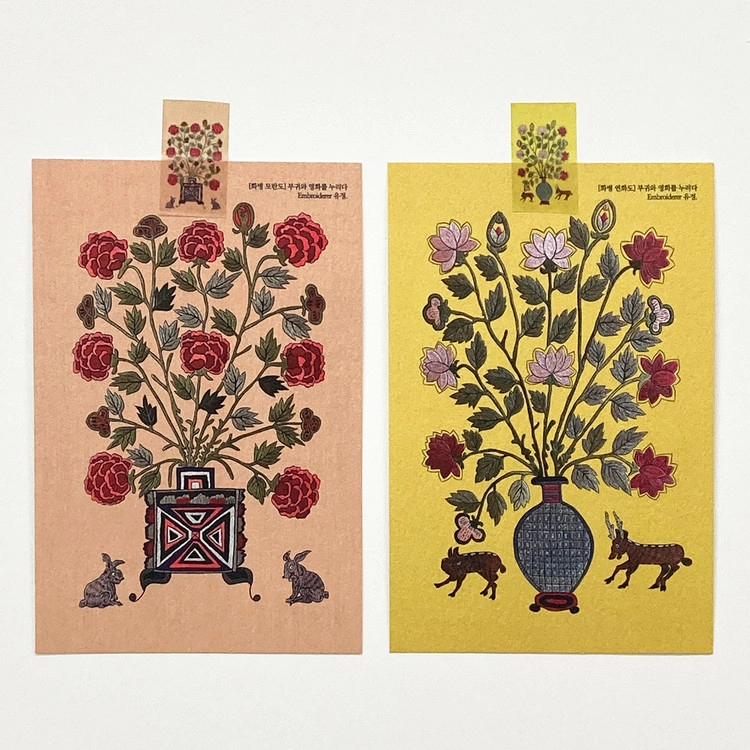 자수 작가의 작품을 이용한 화병 모란도와 화병 연화도의 엽서